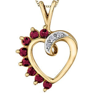 10K Yellow Gold Diamond Garnet Heart Necklace