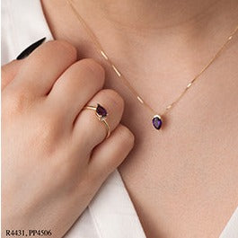 10K Yellow Gold Pear Shaped Amethyst Necklace