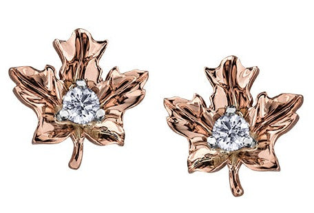 14K Rose Gold Diamond Maple Leaf Earrings