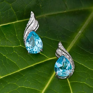 10K White Gold Diamond & Sky Blue Topaz Earrings