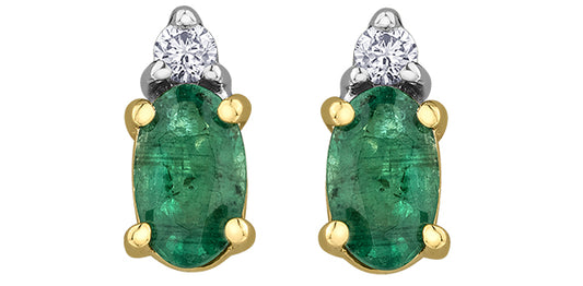 10K Yellow Gold Emerald & Diamond Earrings