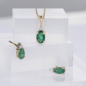 10K Yellow Gold Emerald Diamond Necklace