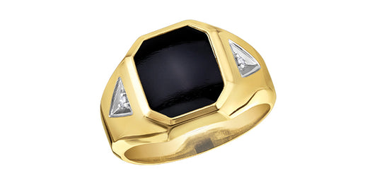 10K Yellow Gold Diamond & Onyx Men's Ring