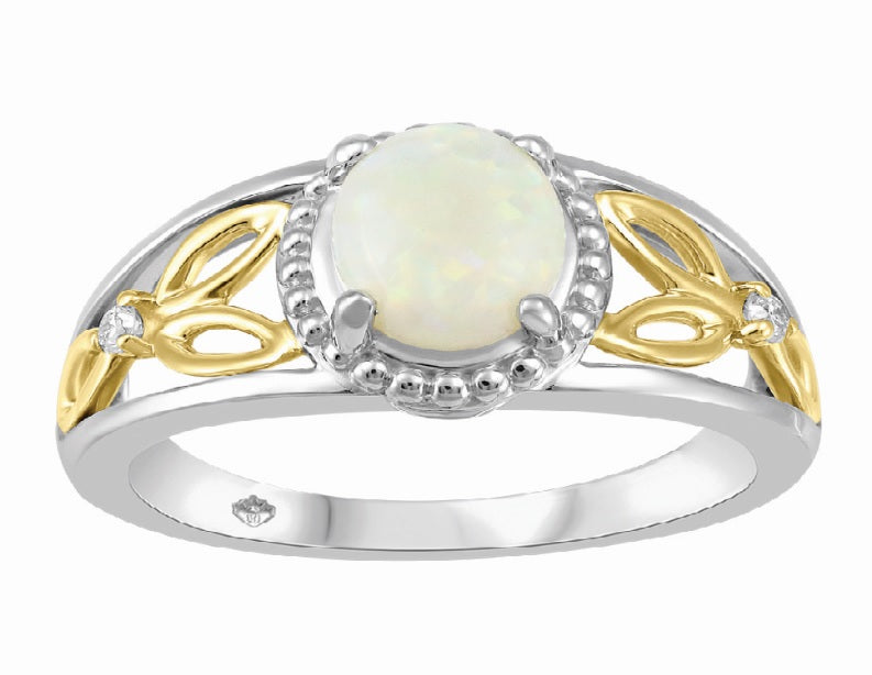 10K Two Tone Diamond Opal Ring