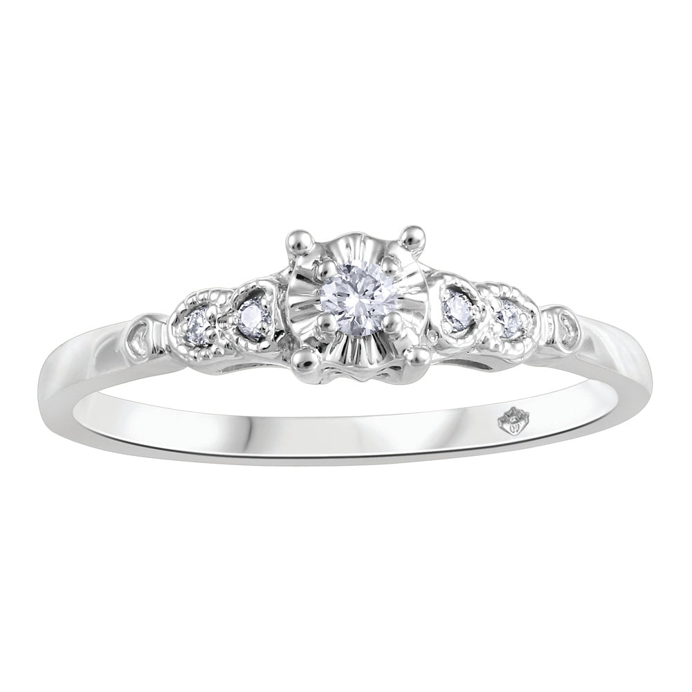 10K White Gold Diamond Engagement Ring featuring 5 illusion set diamonds of .13ct total weight