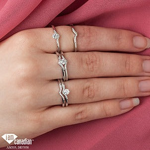 10K White Gold Diamond Ring featuring .16ct Canadian diamond center plus 10 side diamonds of .05ct total diamond weight