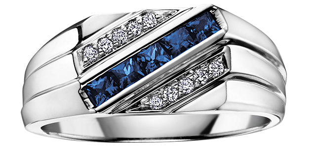 10K White Gold Diamond Sapphire Ring featuring 10 diamond of .10ct total diamond weight