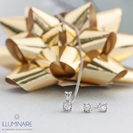 10K White Gold Illusion Set Diamond Stud Earrings in varying carat weights