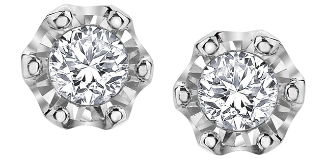 10K White Gold Diamond Stud Earring featuring 2 diamonds of .08ct total diamond weight