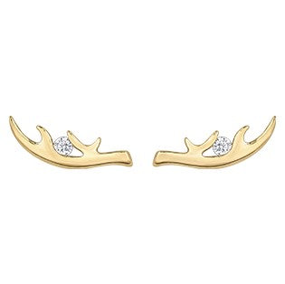 10K Yellow Gold Diamond Antler Earrings featuring two Canadian diamonds of .04ct total weight