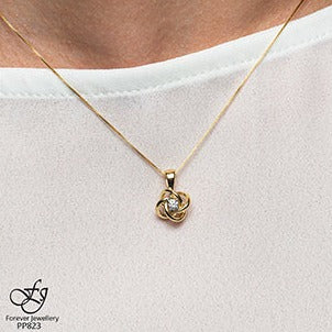 10K Yellow Gold Love Knot Necklace featuring .042ct Canadian Diamond
