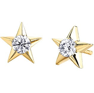 10K Yellow Gold Diamond Star Stud Earrings featuring 2 Canadian Diamonds
