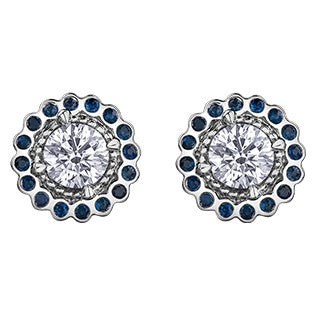 14K White Gold Diamond & Sapphire Stud Earrings featuring 2 Maple Leaf Diamonds of .60ct total diamond weight plus 32 sapphires (1mm diameter)