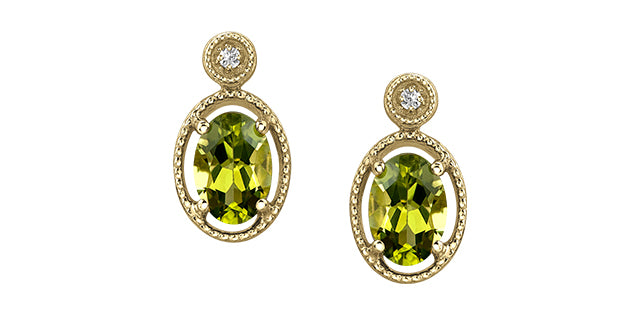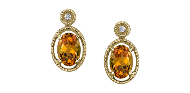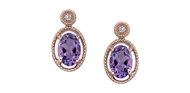 10K Yellow/White/Rose Gold featuring two 7x5mm oval genuine gemstones plus 2 diamonds of .02ct total diamond weight