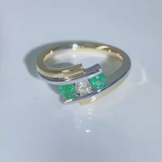 Featuring a very sentimental diamond and two natural emeralds, this ring was made with love.