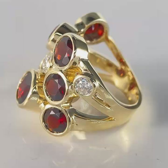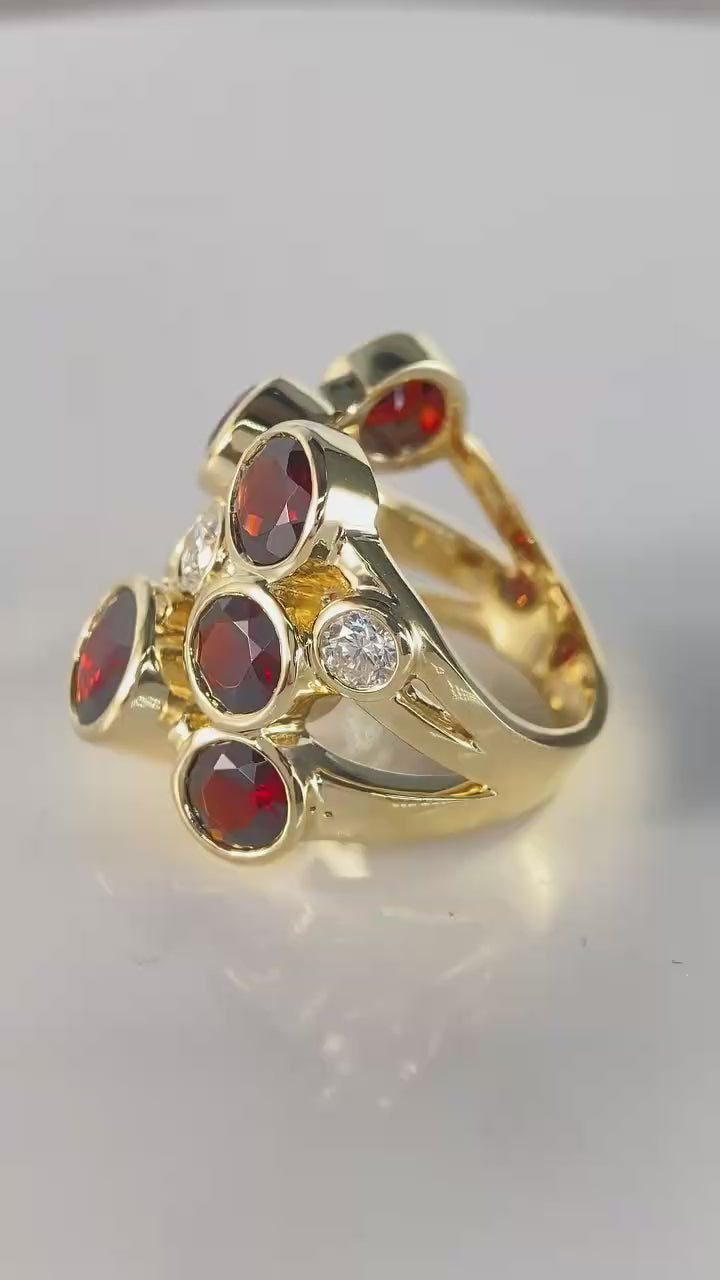 Yellow Gold Diamond Garnet Ring featuring our clients' stones