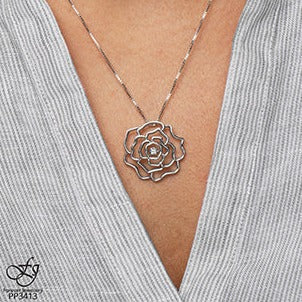 Sterling Silver Dancing Diamond Rose Necklace featuring .037ct Canadian Diamond