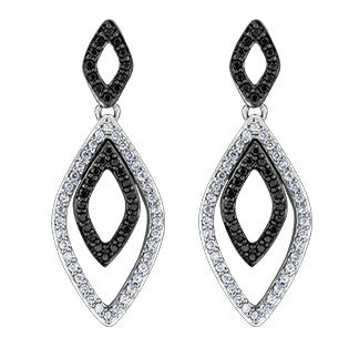 Two Tone Diamond 10K White Gold Earrings featuring 72 natural diamonds of .18ct total weight plus 64 black diamonds of .16ct total diamond weight