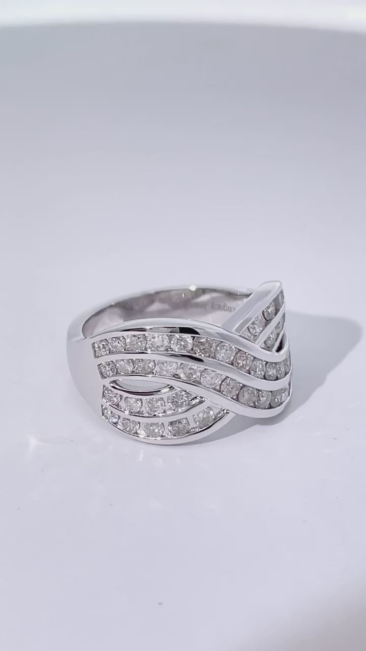 White Gold Wide Diamond Band featuring natural channel set diamonds